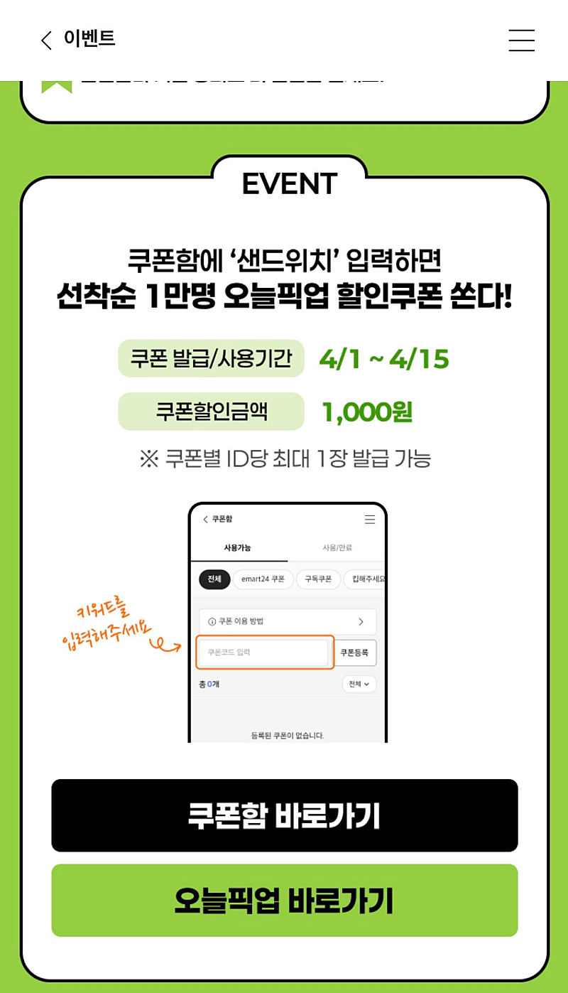 정보) 이마트24 샌드위치 1000원 쿠폰
